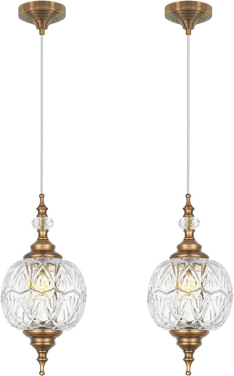 Vintage Pendant Lights Kitchen Island Set of 2, Brass Bathro...