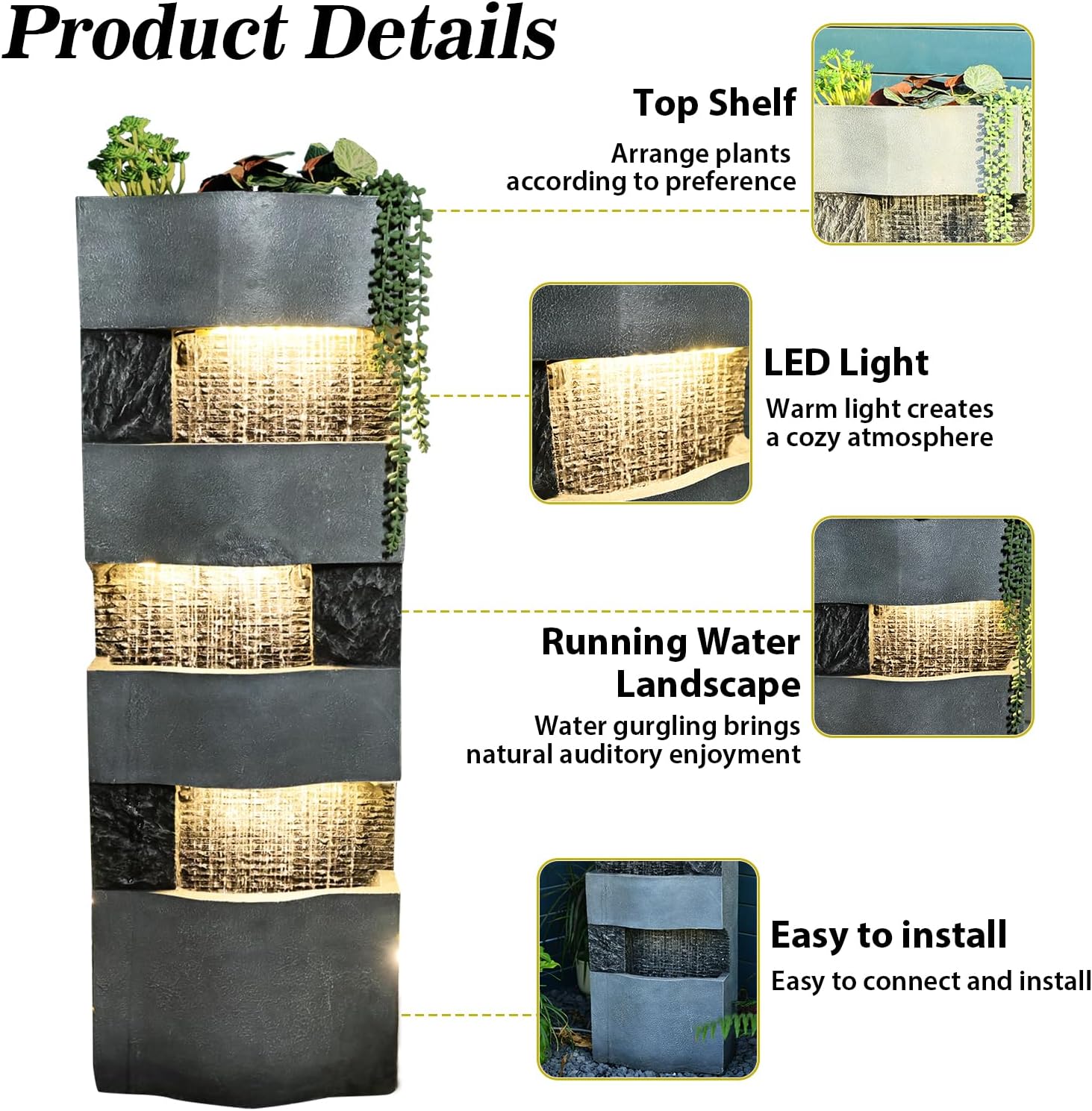 Multi-scene Application: The outdoor fountains and waterfalls is easily integrated into all kinds of indoor and outdoor space, adding a touch of fashion style for the courtyard, terrace. The gentle, soothing sound of flowing water creates a quiet, relaxing space to unwind and unwind.