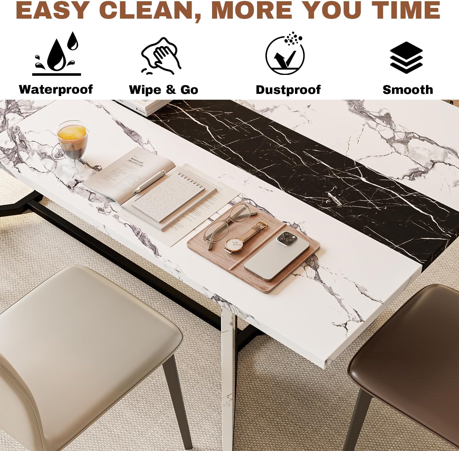 【Elegant Marble-Inspired Design】The black-and-white color scheme embodies a timeless style, adding a touch of elegance to your living space. Compared to traditional stone, this modern dining table’s tabletop is 70% lighter yet delivers the same premium look. It effortlessly complements modern, rustic, industrial, and other diverse decor styles, becoming a stunning focal point in your dining area.