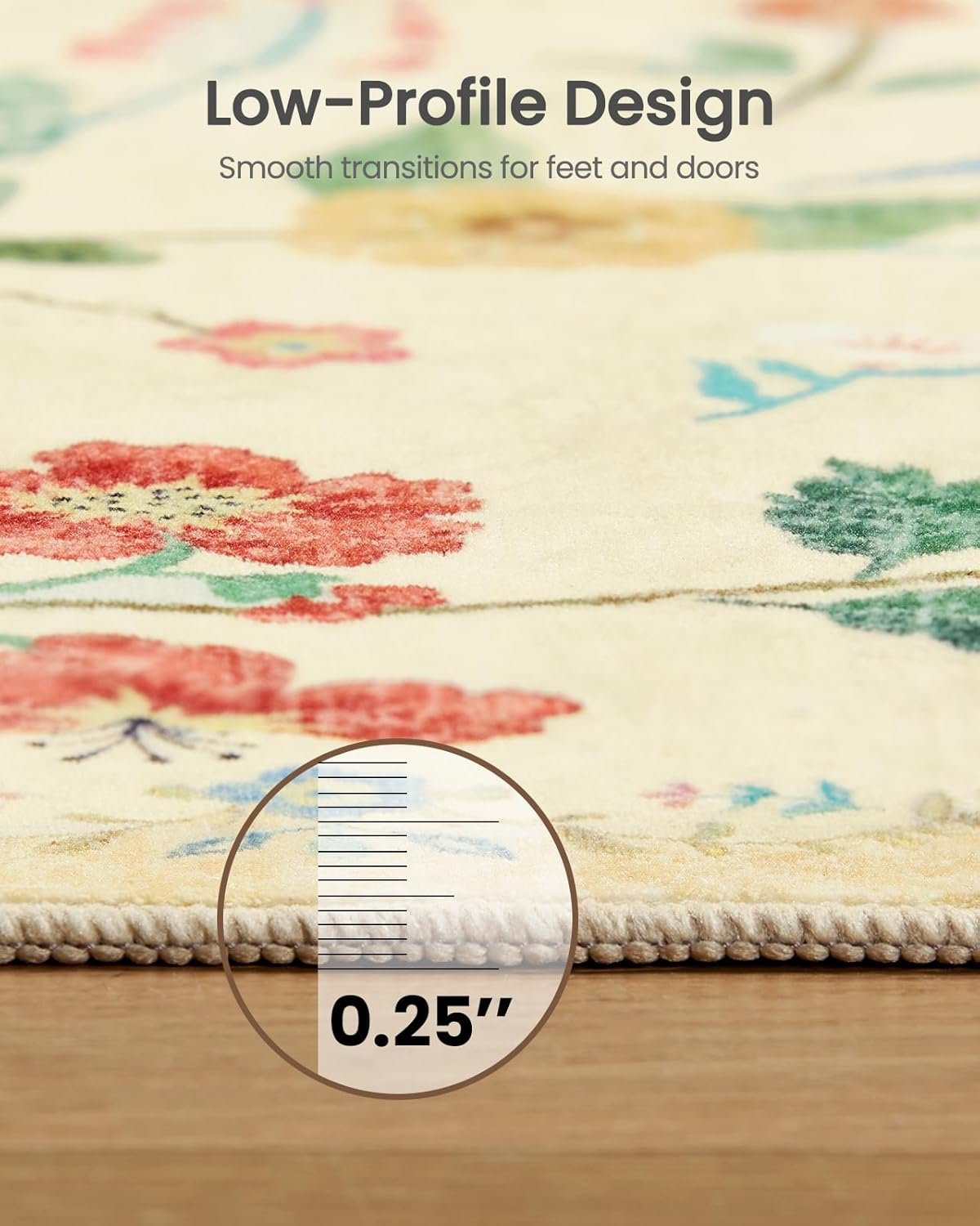 Low-Pile Design: The even, short-pile construction is long-lasting and highly functional. The low profile form fits easily under doors and provides smooth transitions without trip hazards. This is an ideal rug for entry spaces and other high-traffic home areas. The lightweight & soft design is also easy to roll up or fold over for cleaning underneath.