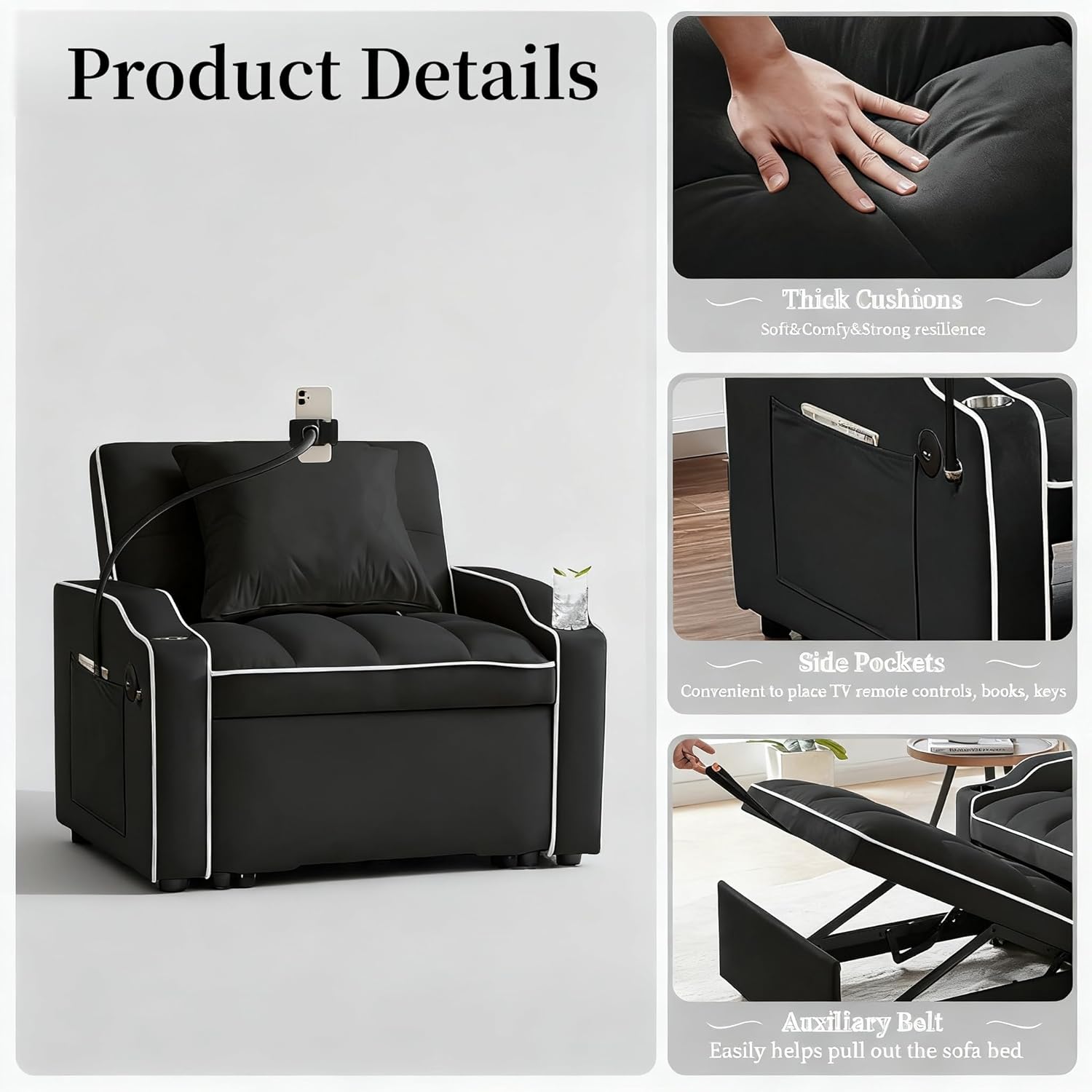 Chair Converts to Bed: This multifunctional sleeper chair bed adopts a multi-functional design, by using the auxiliary pull strap, you can easily convert this sofa chair into a chaise lounge chair or a comfortable single bed.