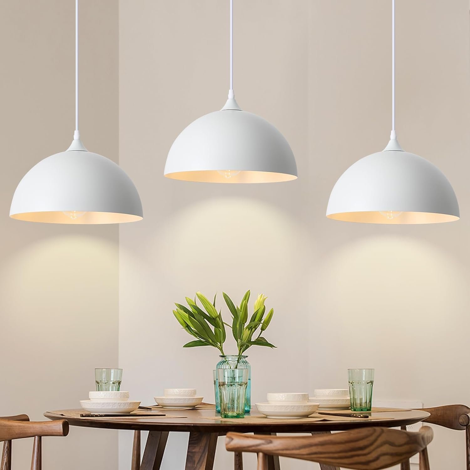 3 Pack White Pendant Lights for Kitchen Island, 12″ Modern Dome Pendant Lighting Fixtures Farmhouse Industrial Vintage Hanging Ceiling Light Fixture for Dining Room Foyer Hallway Bar Cafe Kitchen Sink