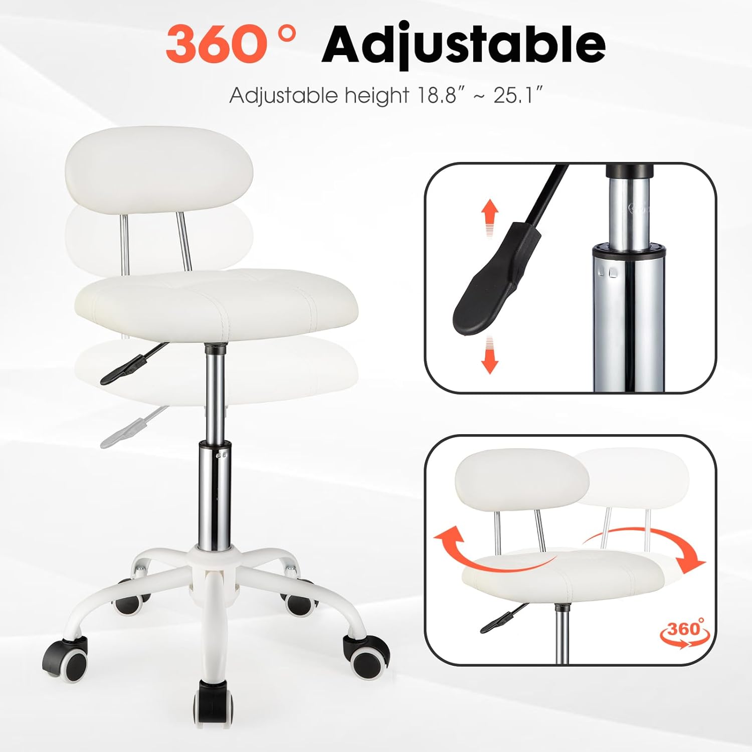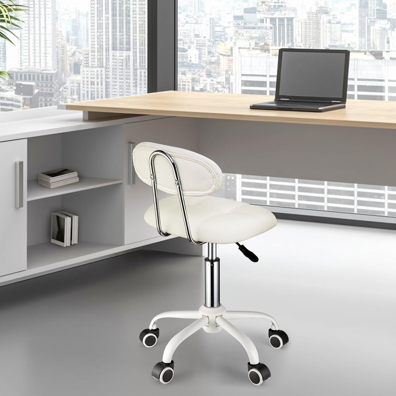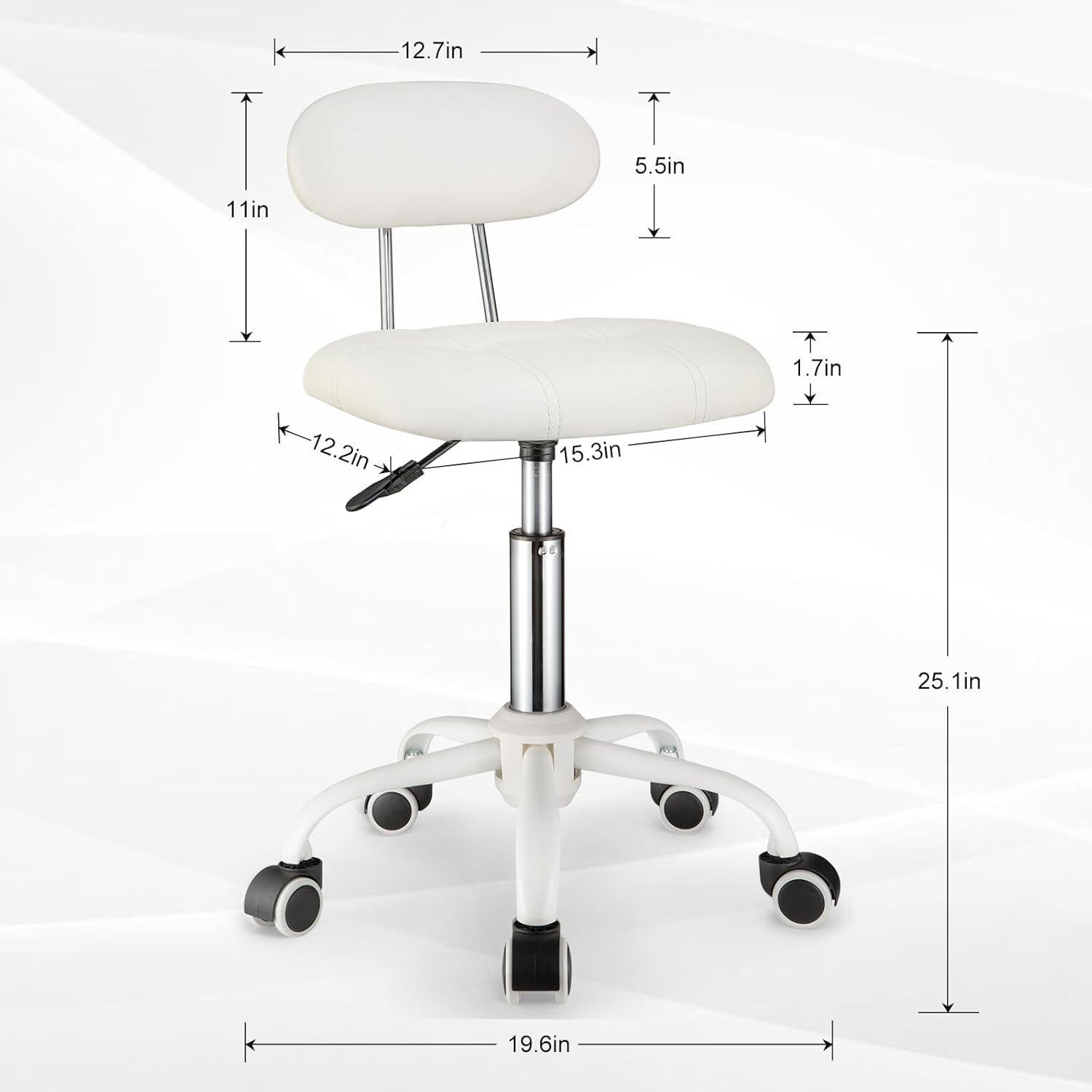 Square Rolling Stool with Backrest Height Adjustable Chair Swivel Drafting Chair Stool Chair with Wheels White