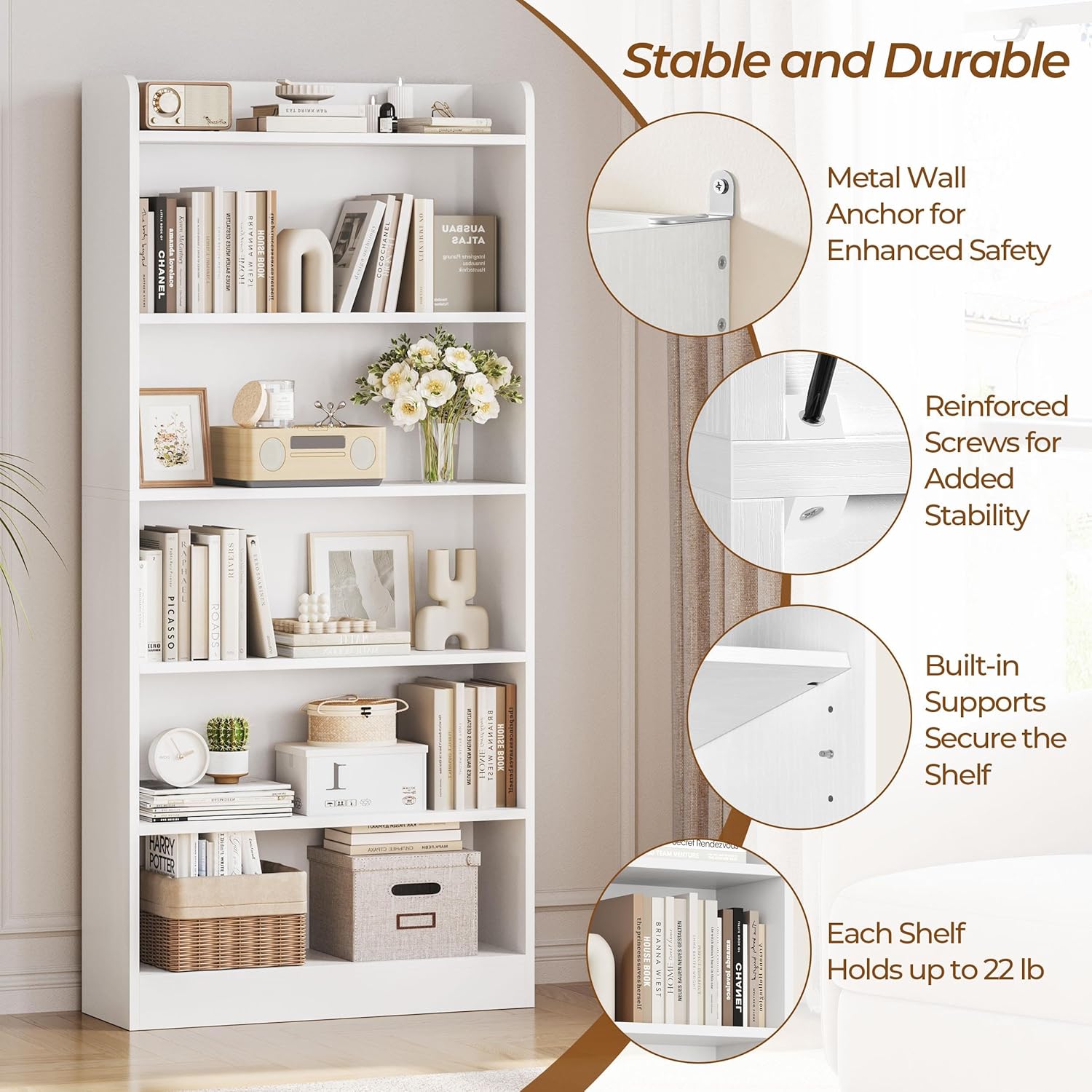 Wall Anchor for Reliable Safety: Designed with safety in mind, this tall vertical bookshelf includes wall anchors to prevent tipping—especially useful in homes with pets or active households. It stays securely in place, giving you extra peace of mind in your everyday space