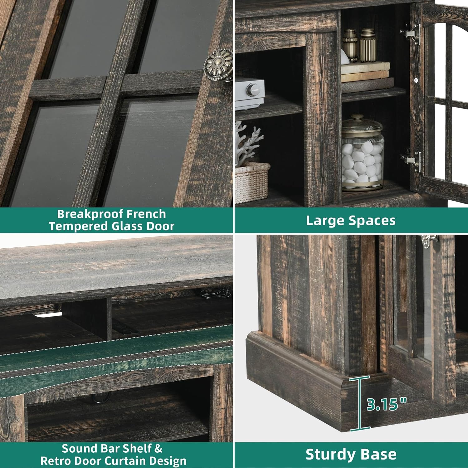 Adjustable Shelves: Farmhouse TV stand made from high-quality engineered wood for long-lasting durability, with 3 adjustable shelves for flexible storage items