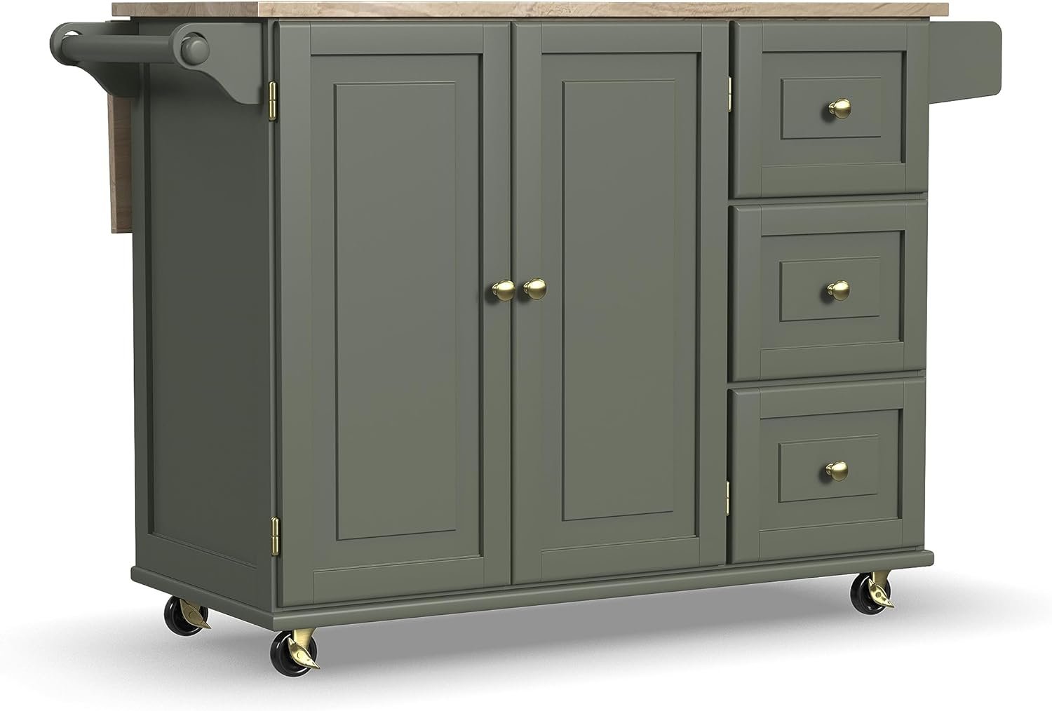 Homestyles Mobile Kitchen Island Cart with Wood Top and Dropleaf Breakfast Bar, 18″ D x 53.5″ W x 36″ H, Green