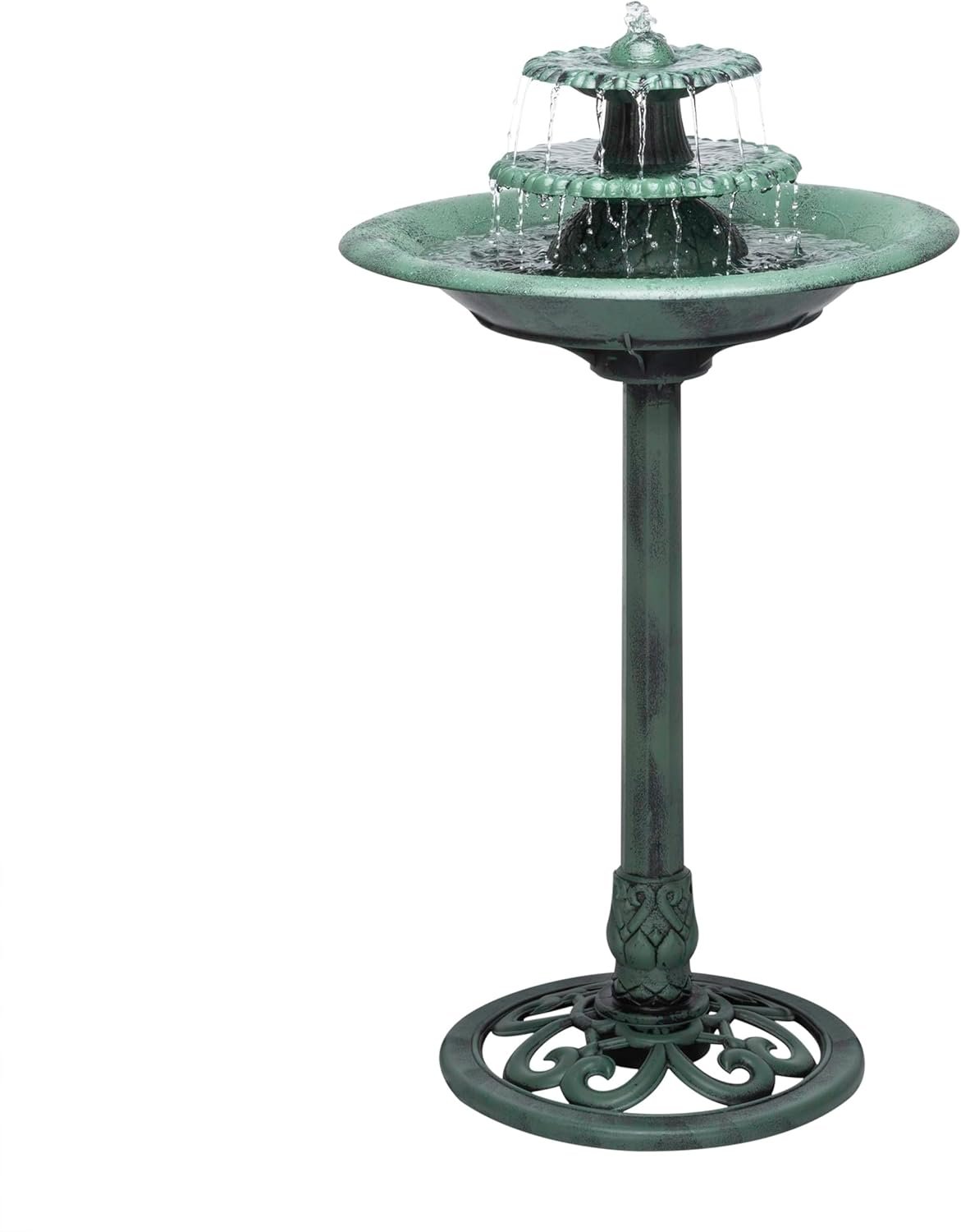Alpine Corporation 35″ Tall 3-Tier Outdoor Pedestal Water Fountain – Durable Resin Cascading Water Feature and Birdbath for Garden, Patio, Deck, and Backyard, Green